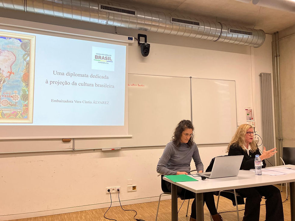 La Chaire Eduardo Lourenço a accueilli, ce lundi 2 février, Son Excellence l'ambassadrice Vera Cíntia Álvarez, nouvelle Consule Générale du Brésil à Marseille. Devant une quarantaine d'étudiants et de personnels d'Aix-Marseille Université, la diplomate a présenté une brillante conférence sur la diplomatie culturelle brésilienne et son parcours professionnel exceptionnel.